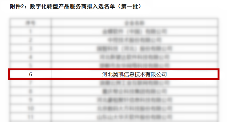 冀凯信息凭借卓越实力与深厚行业积淀,在众多竞争者中脱颖而出,成功入选《邯郸市数字化转型产品服务商拟入选名单(第一批)》。
